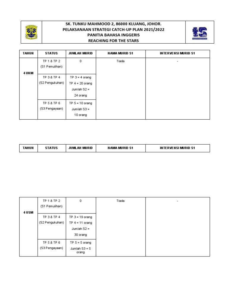 Catch Up Plan Panitia Bahasa Inggeris Sk Lktp Tenang Pdf
